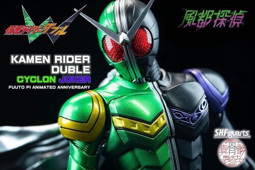 「風の街、風都、ココは俺の庭だ。」 皆様ようこそお越しくださいました。 今回ご紹介するアイテムは S.H.フィギュアーツ 真骨彫製法 「仮面ライダーW サイクロンジョーカー風都探偵アニメ化記念」 と言う結構長い名前の商品でございます。 前回の大馬神のレ…